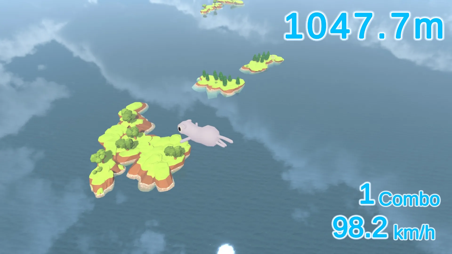 - ブレーキをかけたり加速したりしながら、狙いすまして中継地点の島に着地します。